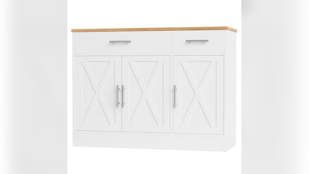 The best buffet cabinet for kitchen storage that combines ample space with a classic farmhouse design.