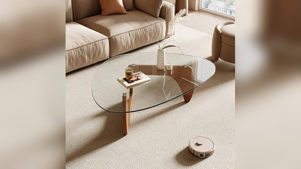 The Best Coffee Table for Modern Homes, this sleek triangular glass table combines minimalist style with practical durability. Its mid-century design fits well in living rooms, bedrooms, or office spaces, offering a stylish yet functional surface for everyday use.