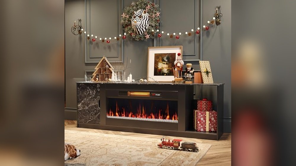 The best fireplace TV stand for home theater setups, combining style and function with a built-in electric fireplace and ample storage.