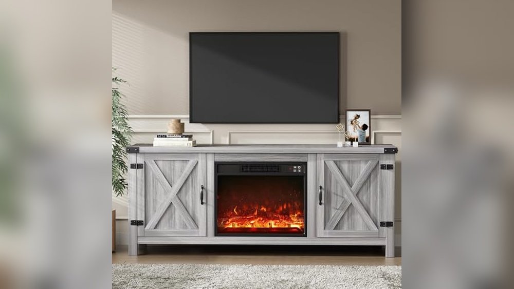 The best fireplace TV stand under $500 that combines farmhouse style with functional storage and warmth.