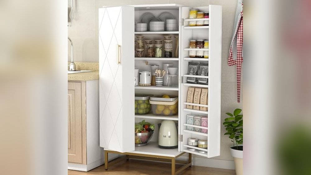 In everyday use, this pantry cabinet stands out for its sturdy fiberboard construction and stable metal base, ensuring durability and safety. Assembly is straightforward with numbered parts and an installation video available, making it accessible for beginners. Its versatility allows it to function well beyond the kitchen, providing extra storage wherever needed without compromising on style or quality.